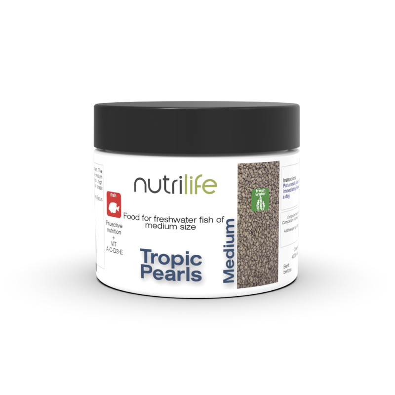 Granular food crumbled with high protein content. The particle size from 1.0 to 1.7 mm is suitable for all medium freshwater fish. It contains natural attractants and a high vitamin content that improve the response to the stress preventing many diseases.