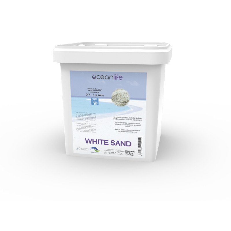 sabbia bianca incontaminata, priva di inquinanti per acquari marini